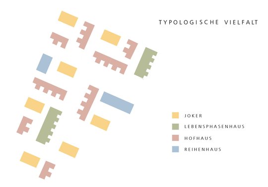 Grundgedanke des Entwurfs ist die Schaffung eines strukturell vielfältigen und sozial durchmischten Stadtquartiers, in dem sich unterschiedliche Generationen, Einkommensgruppen und Familienkonstellationen zu überschaubaren Nachbarschaften zusammenfinden.
