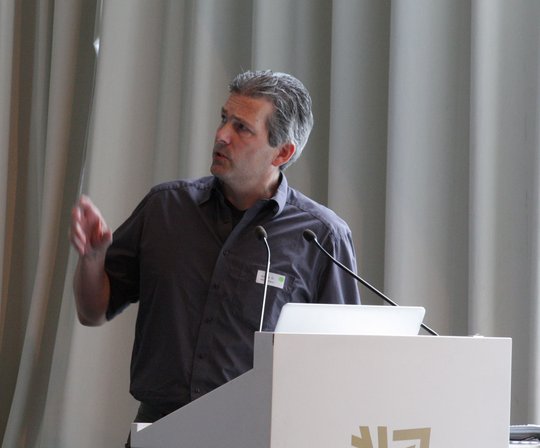 Moderatorin Jeannette Merker (mit Mikro) stellte die drei Workshopleiter vor (v.l.): Markus Lägeler, Anja Krämer, Dr. Dr. Arne Winkelmann