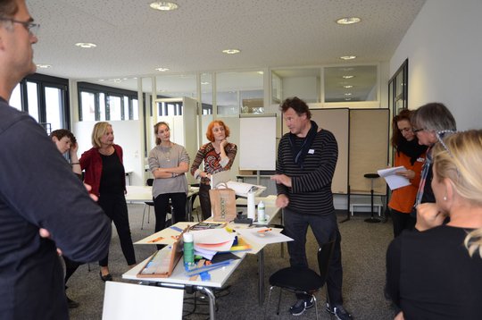 Gelobt wurde der interdisziplinäre Austausch. Worauf man alles achten müsse, sei ihr als Kunsterzieherin erst im Gespräch mit dem Architekten klar geworden, bekannte eine Teilnehmerin. Workshopleiter Robert Thomsen konnte aus seiner praktischen Erfahrung als Lehrer und Architekt interessante Anregungen für die Umsetzung einbringen. Und in der Tat standen am Abend zwei - in aller Einfachheit - durchaus überzeugende Modelle auf dem Tisch.