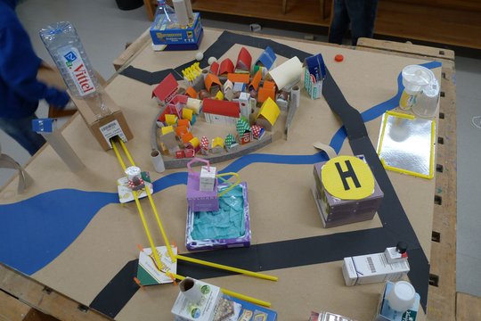 3. Kurstag, Städtebau: wir untersuchen die Entstehung einer Stadt und die Ursprünge der Städtenamen und bauen ein Stadtmodell aus Schachteln, Papier und Abfallmaterialien