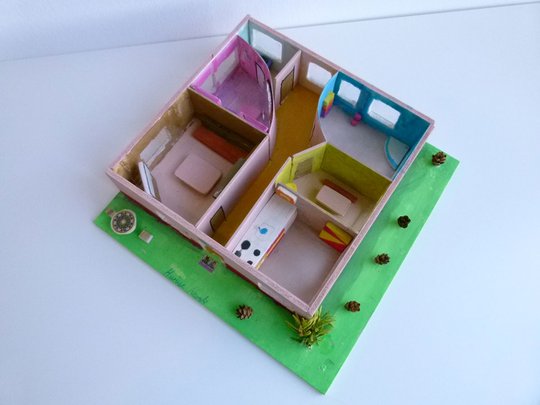 Der Kreativität wurde auch im letzten Schritt freien Lauf gelassen: Als Hausaufgabe sollten die Kinder die Inneneinrichtung anfertigen, was erneut zu der Herausforderung führte, dass maßstabsgerecht gearbeitet werden musste. Doch inzwischen waren die Kinder routiniert genug, auch hier begeisternde Ergebnisse zu produzieren.