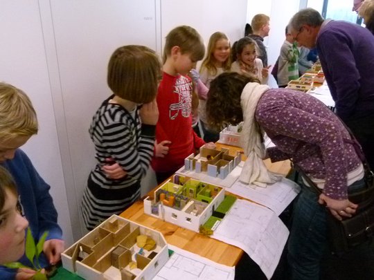 Dort durfte jedes Kind vor den Eltern und den Architekten seine Wohnung vorstellen und die gestalterischen Ideen erläutern. Rektor Dirk Seifert lobte die Schüler für die hervorragenden Leistungen und Klassenlehrerin Ingrid Konstantinidis für das Engagement. Auch Bürgermeister Buob würdigte die angefertigten Modelle und setzte sich dafür ein, dass diese im Rathaus ausgestellt werden.