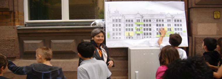 Die Schüler erhielten ein Teilbild eines Fassadenschmuckelementes und mussten die andere Hälfte ergänzend nachzeichnen.