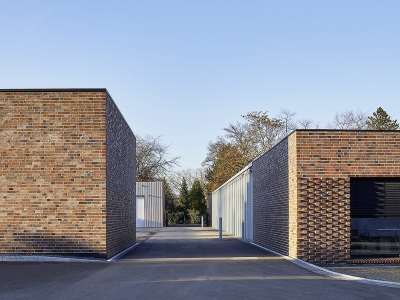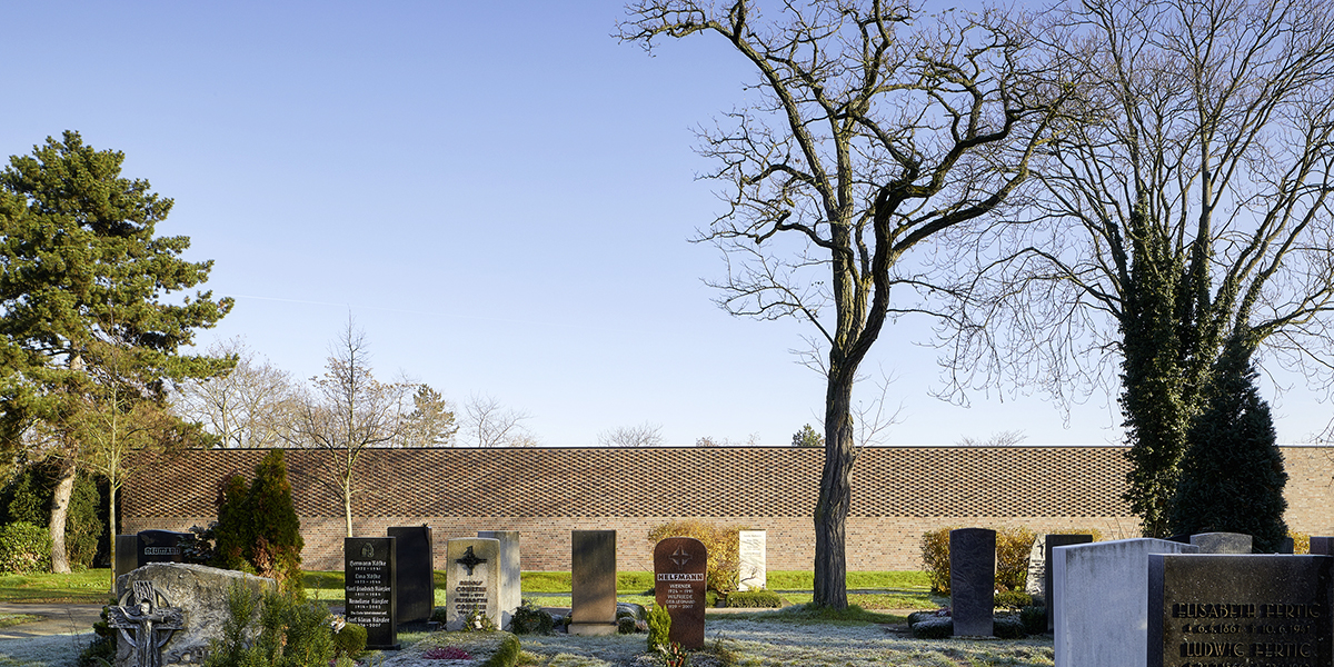 Die Umfassungsmauern der Erweiterungsfelder sind prägende Bestandteile der baulichen Anlagen des Friedhofsgeländes. Raumhaltige Bauten wie Friedhofsamt, Urnen- und Aussegnungshalle und eben auch der Betriebshof ordnen sich in diese Mauern ein. Folgerichtig wurde auch der Entwurf des neuen Betriebshofs aus dem Motiv der Umfassungsmauer entwickelt.