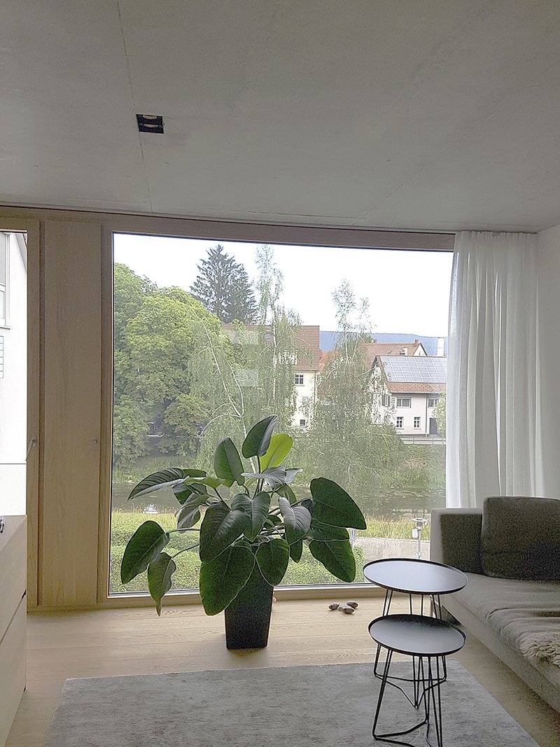 Das Stadthaus bietet alle Annehmlichkeiten eines freistehenden Einfamilienhauses, wenngleich viel kompakter und mit weniger Flächenverbrauch. Das Erscheinungsbild im Inneren dominieren wenige Materialien wie Sichtbeton, Eichenholz für Böden und Fenster, sowie weiß lackierte Einbaumöbel und raumhohen Türen. Da Haus ist aus statischen Gründen als Stahlbetongebäude errichtet. Aufgrund der schlechten Gründungssituation der Nachbarhäuser und des nichttragenden Baugrundes wurde das gesamte Gebäude auf Mikropfählen bis auf den Donaukies errichtet.