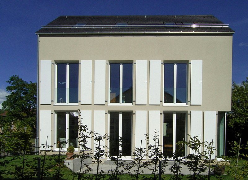 Die bis in die Tragstruktur mit wärmedämmenden Materialien erstellte Gebäudehülle entspricht dem Passivhausniveau. Aufgrund des sehr geringen Heizenergiebedarfs und den überdurchschnittlichen Investitionen in die Gebäudehülle wurde auf eine Hightech-Haustechnik verzichtet. Eine kontrollierte Be- und Entlüftung mit Wärmerückgewinnung und Erdwärmetauscher rundet das Effizienzkonzept ab.