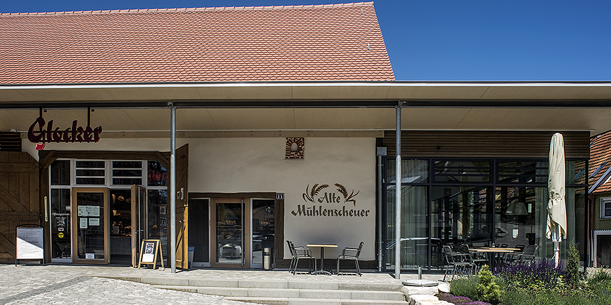 Seit Jahrzehnten existiert die Bäckerei Glocker in der Gemeinde Gomadingen und gewährleistet durch den Verkauf der Backwaren und einen kleinen Landmarkt die Grundversorgung für den Ort Gomadingen einschließlich der Teilorte. Nun wurde direkt an der Ortsdurchfahrt, die auch die Zubringerstraße nach Marbach und ins Lautertal ist, in der historischen Mühlenscheune der Backwarenverkauf, der kleine Landmarkt und ein Café mit Außenbewirtung direkt an der Lauter geplant und gebaut. Durch das Biosphärengebiet Schwäbische Alb und die Nähe zum Haupt- und Landgestüt Marbach ist der Tourismus in der Region deutlich stärker geworden.