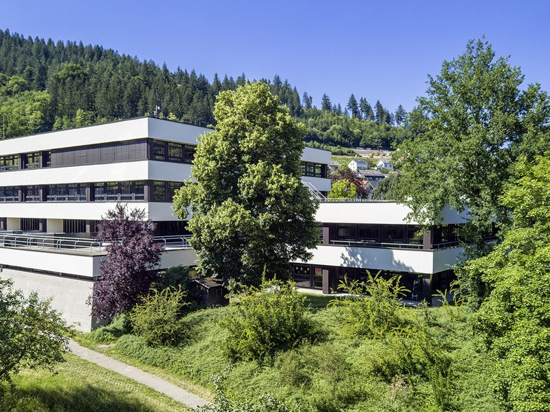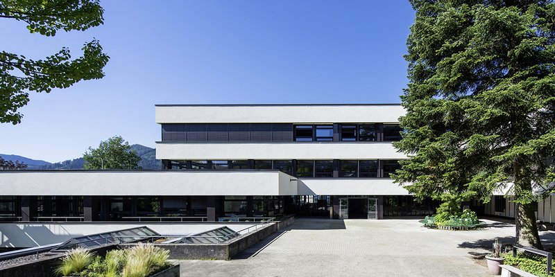 Anschließend an ein gewachsenes Wohngebiet wurde 1972 das Berufliche Schulzentrum Wolfach als klassischer Sichtbetonbau fertiggestellt. Mit einer klaren, geometrischen Formensprache staffelt sich das Schulgebäude mit insgesamt vier Geschossen den Hang hinauf.
