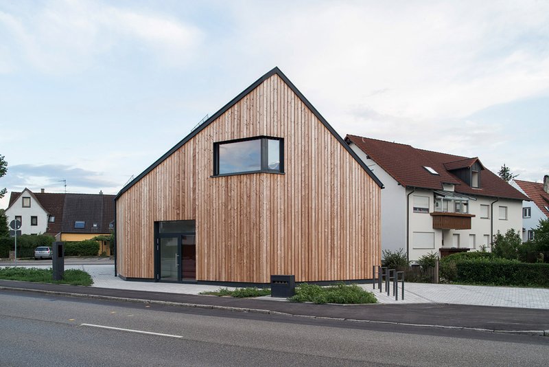 Der Zuschnitt des Grundstücks bot nur im westlichen Bereich Richtung Stadtausgang die räumliche Möglichkeit für einen Erweiterungsbau. Die Schwierigkeit der Bauaufgabe war somit durch das kleine Grundstück definiert. Aufgrund der exponierten Lage am Stadteingang/-ausgang an der viel befahrenen B14 entstand der konzeptionelle Ansatz einen Erweiterungsbau zu entwerfen, der sich klar vom bestehenden Gebäude absetzt, unterscheidet und die städtebauliche Situation aufwertet.