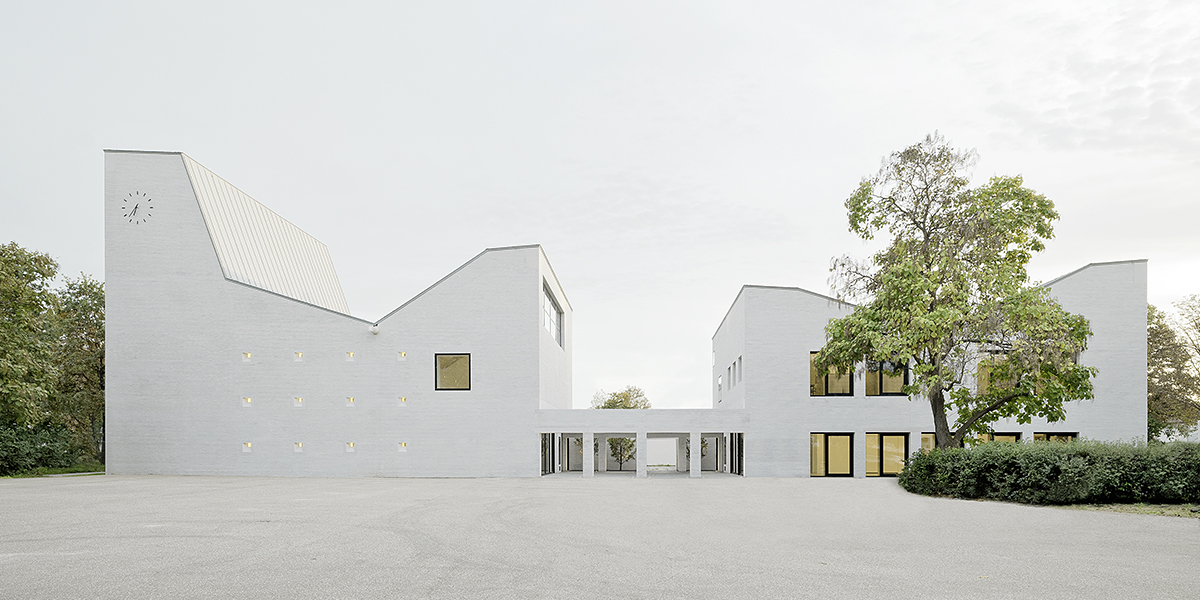 Die Außenwandflächen der Gebäude sind als Ziegelmauerwerk ausgebildet, das geschlämmt ist, wodurch das neue Gebäudeensemble auf angemessene Weise mit den verputzten Bauten der Umgebung korrespondiert, die Außenbereiche insgesamt heller wirken und Innen- und Außenwandflächen sich stärker verbinden. Eine Folge von geneigten Dachflächen prägt die äußere Gestalt und verbindet die beiden Gebäudeteile zu einer stadträumlichen Einheit. Gleichzeitig korrespondieren sie mit den Satteldächern der Umgebungsbebauung.
