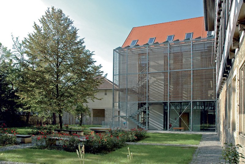 Die im Jahr 2006 abgeschlossenen Bauarbeiten unterteilten sich in drei Abschnitte: als neuer Flügel des mittelalterlichen Gebäudeensembles wurde zu Beginn ein Ergänzungsbau mit Fachklassen errichtet.