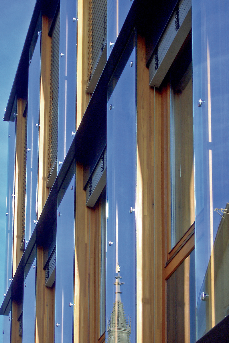 Bei der Wahl der Konstruktionen und Materialien wurde beabsichtigt, ein Gebäude zu erstellen, das die Strukturen des Bestandes respektiert, sich aber als eigenständiges Bauwerk seiner Zeit präsentiert.