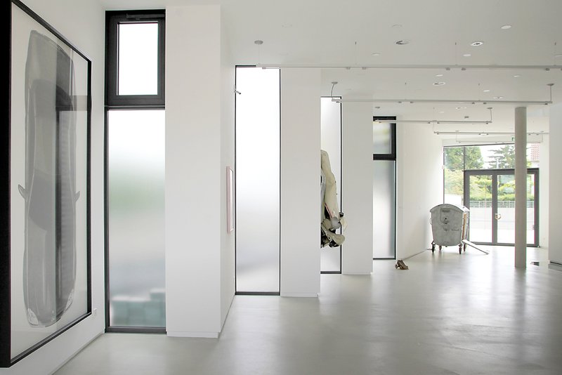 Das Baugrundstück befindet sich an einer stark befahrenen Kreuzung in Stuttgart-Möhringen in heterogener baulicher Umgebung. In seiner Körnung den anschließenden Häusern angepasst setzt das neue Galeriegebäude jedoch konsequent auf ein zeitgenössisches Erscheinungsbild als Zeichen für einen besonderen Ort zur Präsentation und Vermittlung junger Gegenwartskunst.