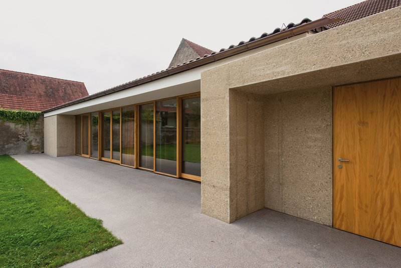 Der Winzerort Bötzingen tritt durch seinen ländlichen Charakter in Erscheinung, wobei Materialien wie Holz, Beton und Putz prägend sind. Diese Regionalität der Materialien spiegelt sich in der Verwendung von geöltem Weißtannenholz, den gestockten Betonoberflächen mit Rheinkieszuschlag den Putzoberflächen der begrenzenden Einfriedungsmauer sowie der Ziegeldeckung wider.