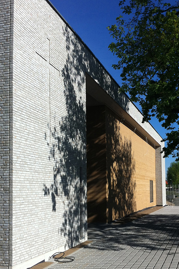 Es entstand ein kubisches Kirchengebäude, hinter dem sich ein kleines Quartier verbirgt: ein Haus wie eine kleine Stadt - es besteht aus einzelnen Gebäudekomplexen wie dem öffentlich zugänglichen Raum der Stille, dem aus Stampflehm erbauten Gottesdienstraum, dem Gruppentrakt und einem Bereich für die Diakonie. Freiräume wie Foyer, der Hof, ein gedeckter Durchgang und Treppenräume verbinden die Gebäudeteile. Das Foyer wird als "innere Straße" zum Ort der Begegnung und Kommunikation. Hier finden auch Konzerte und Feiern oder Kerzenziehen einen angemessenen Raum. Klinkermauerwerk fasst diese räumliche Vielfalt zu einer Einheit zusammen. Die Komposition aus Innen- und Außenräumen lädt ein, die sakralen Räume mit Leben zu füllen sowie Gemeinschaft zu erleben.