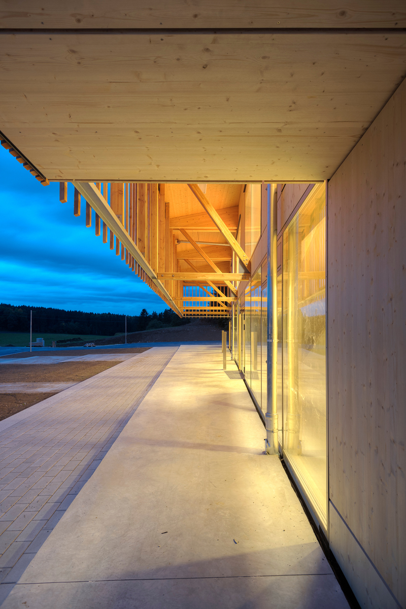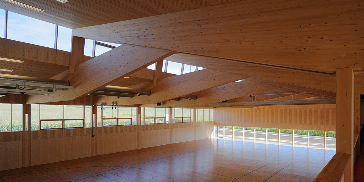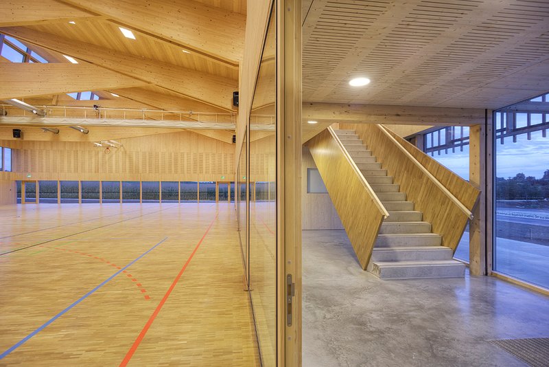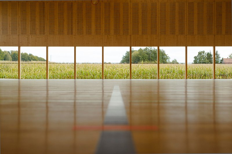 Die Entscheidung der Stadt Blaubeuren, die neue Mehrzweckhalle zwischen die beiden Ortschaften Beiningen und Pappelau auf die grüne Wiese zu setzen, war nicht unumstritten. Dieser besonderen Lage, in Sichtweite zweier Ortschaften, umgeben von Feldern und Wald trägt das Gebäudekonzept einerseits durch den Einsatz nachhaltig ökologischer Materialien Rechnung, andererseits durch ressourcenschonende und CO2- mindernde Haustechnikkomponenten. Zudem schafft die sorgfältige Verortung des Baukörpers und seiner Funktionen eine große Identifikation der Halle mit diesem Ort.