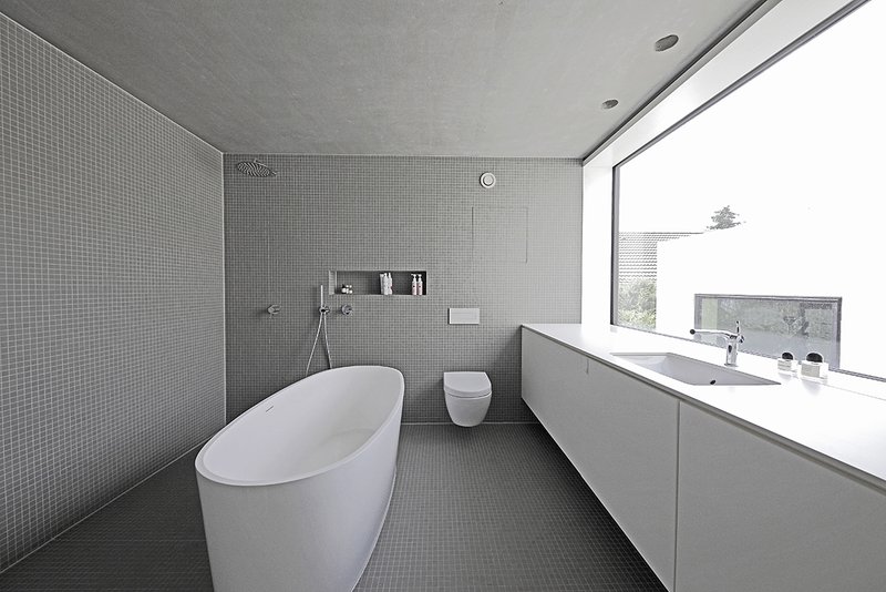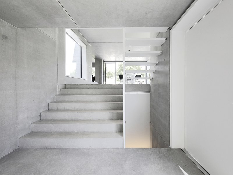 Innenwände: Sichtbetonwände und Gipskartonständerwände weiß