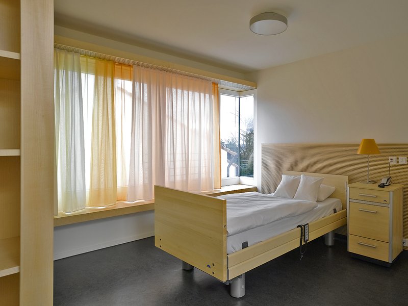 Das Leben im Gastzimmer bietet eine individuelle Regelung des Maßes der Einbindung in die Gemeinschaft. Unterschiedliche Stellungsmöglichkeiten des Bettes lassen die Gäste gleichzeitig oder ausschließlich den Blick in die Landschaft oder in den Wohnbereich der Gemeinschaft wählen. Teilnahme oder Rückzug ist konzeptionell angelegt und wird zur individuellen Entscheidung der Gäste.