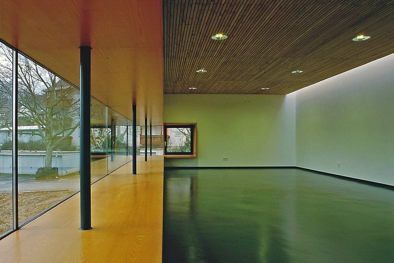 das gebäude wurde aus ökonomischen und gestalterischen gründen zweigeschossig geplant. zum einen ergeben sich dadurch kleinere dach- und gründungsflächen, zum anderen kann sich das haus gegenüber der umgebenden bebauung besser behaupten.