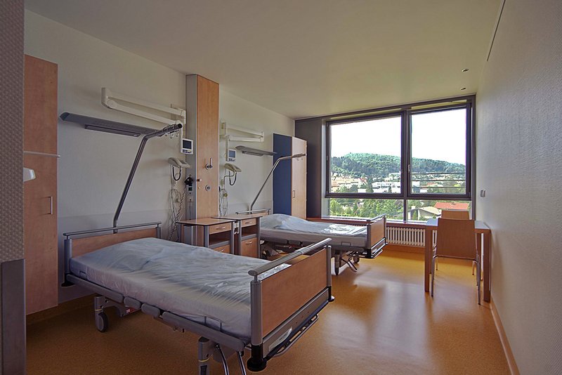 Aus den bisherigen 3-Bettzimmern wurden entweder 2-Bettzimmer oder Einzelzimmer. Teilweise wurden zur Optimierung der Pflegeabläufe je zwei Zimmer zu einem 4-Bettzimmer zusammengelegt.