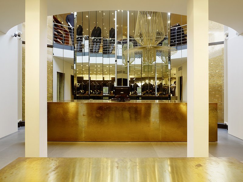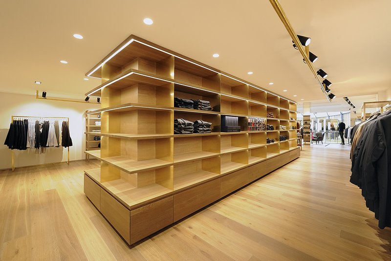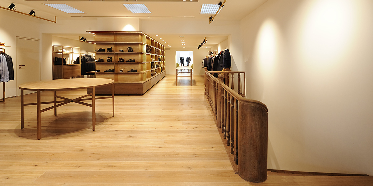Das Ladengeschäft Herrenausstatter Zwicker an der Markstätte in Konstanz ist in zwei unterschiedlichen, direkt nebeneinander liegenden, schmalen mittelalterlichen Bauwerken untergebracht. Durch das Vorfinden von vorhandenen Fehlstellen und Öffnungen an den Wandelementen zwischen den beiden Gebäuden wurde ein Innenraumkonzept möglich, welches die beiden historischen Gebäude lesbar macht und die Innenräume im Erdgeschoss und im ersten Obergeschoss miteinander verbindet. Ein eingestelltes großzügiges Ledermöbel im Erdgeschoss und ein eingestelltes großformatiges Möbel aus Messing und Holz im Obergeschoss betonen jeweils die Mitte der Räume zwischen den Gebäuden. Die vorhandene holzsichtige Decke wurde freigelegt und restauriert, die Innenraumkonzeption ist auf wenige Materialien wie Leder, Holz und Messing reduziert.