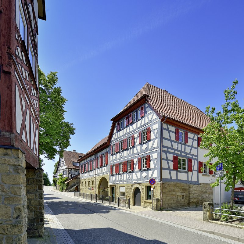 Aufgrund des bestehenden Denkmalschutzes war ein behutsamer Umgang mit dem vorhandenen Bestand unumgänglich. Auf die Auswahl der Materialien und Farben wurde daher ein besonderes Augenmerk gelegt. Alte Gebäudeteile, wie beispielsweise die alte Holztreppe des Hauptgebäudes, wurden soweit wie möglich erhalten und restauriert. Auch die Fassade erstrahlt in neuem Glanz, nachdem diese vom Putz befreit und das alte Sandsteinmauer- bzw. Holzfachwerk freigelegt wurden.