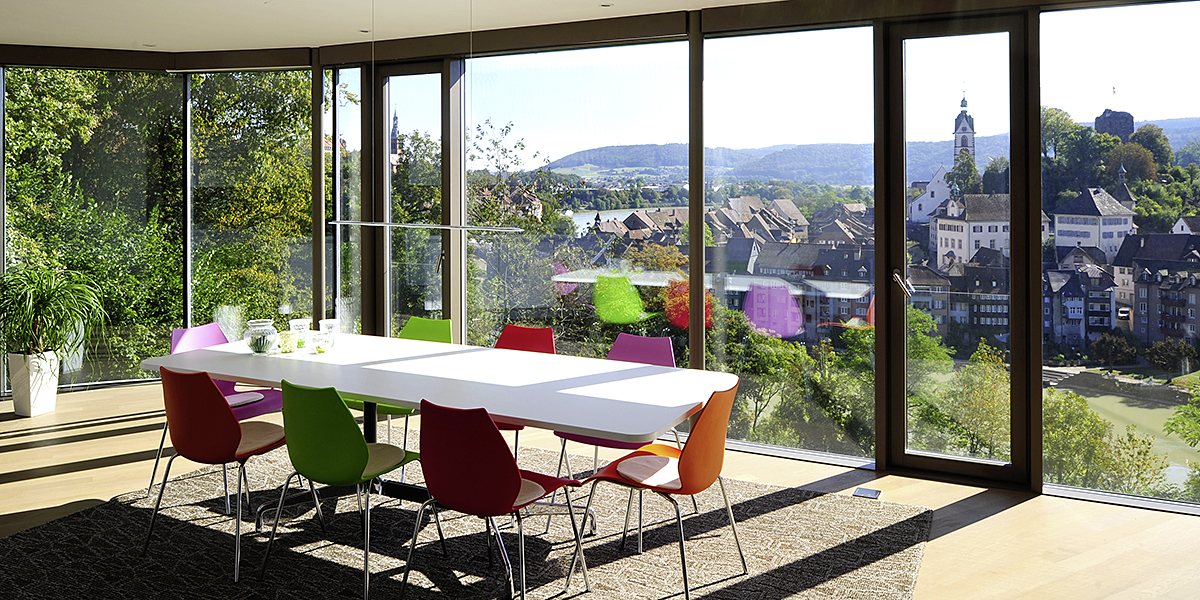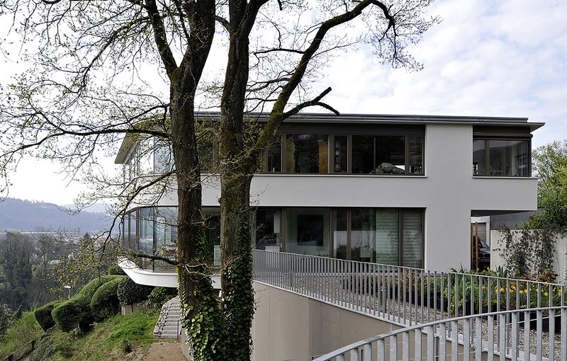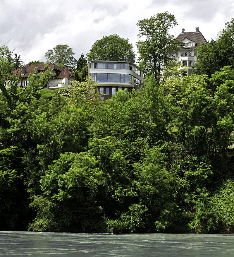 Das Projekt wurde in steiler Hanglage oberhalb des Laufenburger Rheinbogens realisiert. Die extreme Hanglage war eine besondere Herausforderung für die Planer wie für die ausführenden Firmen. Entgegen einer üblichen Südausrichtung von Gebäuden wurde der