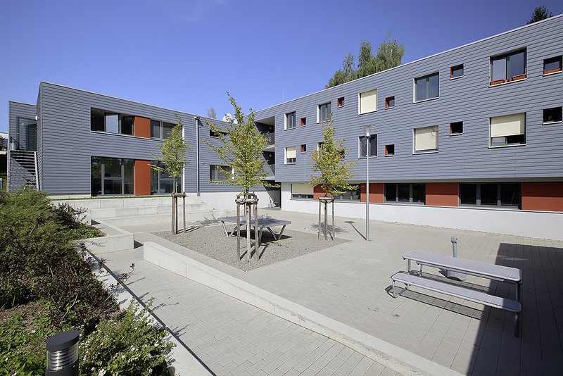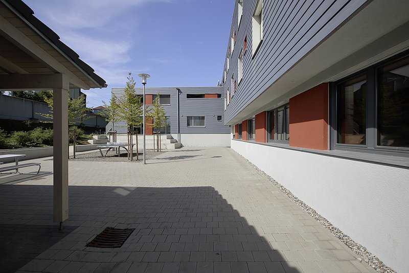 das Haus gerecht. Balkone am Treppenhaus bieten gleichermaßen Treff- und Rückzugsorte. Der durch das L-förmige Gebäude und den dazugehörenden Schopf entstandene Hof lädt ebenfalls zum Verweilen ein. Die Anlage wirkt nicht als Fremdkörper, sondern als selbstverständlicher Teil der Gemeinde. Die niedrigen Baukosten und die sensationell kurze Bauzeit tragen zudem zur Beispielhaftigkeit bei.