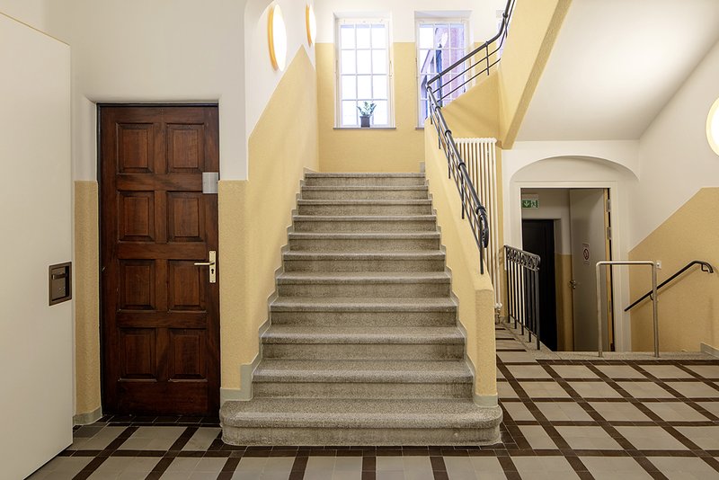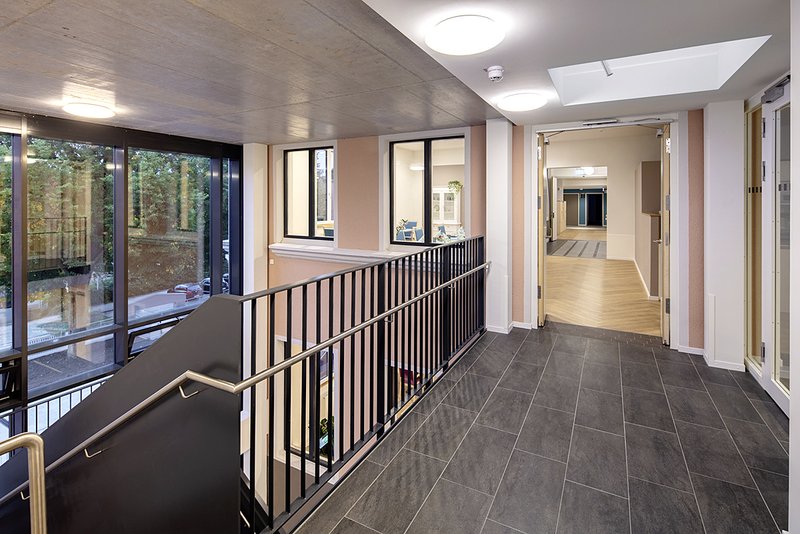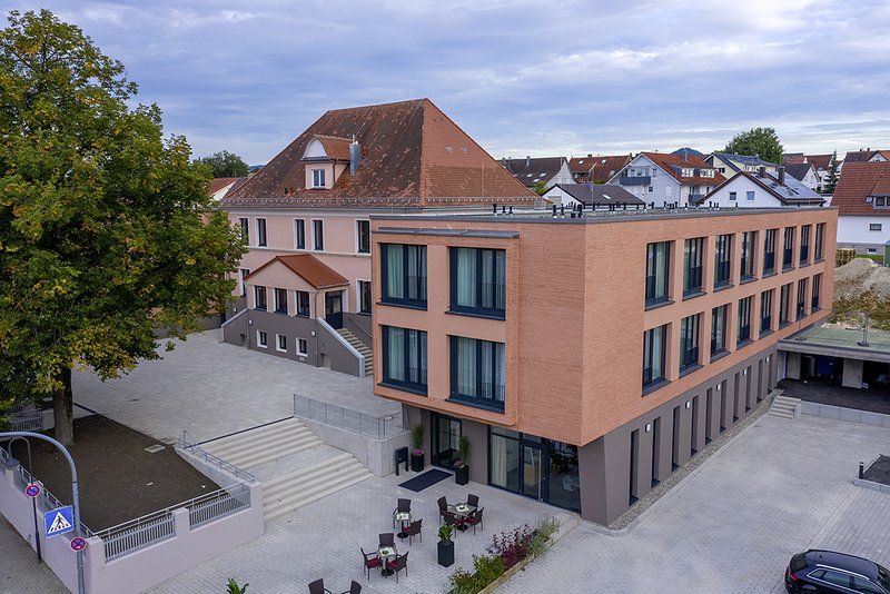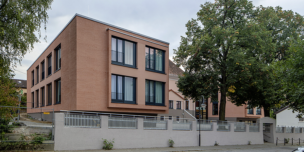Heute umschließen zwei zeitgemäß gestaltete Neubauteile mit 52 Individualzimmern, die sich bewusst nach außen hin zum städtischen Umfeld hin orientieren, diesen historischen Kern. Im Schnittpunkt zwischen Ost-und Westflügel liegend, wird er zur neuen lebendigen Mitte, zum Begegnungs-, Wohn- und Aufenthaltsbereich, vielleicht zum liebevollen Kleinod inmitten eines ansonsten funktionsorientierten Pflegeheimbetriebs.