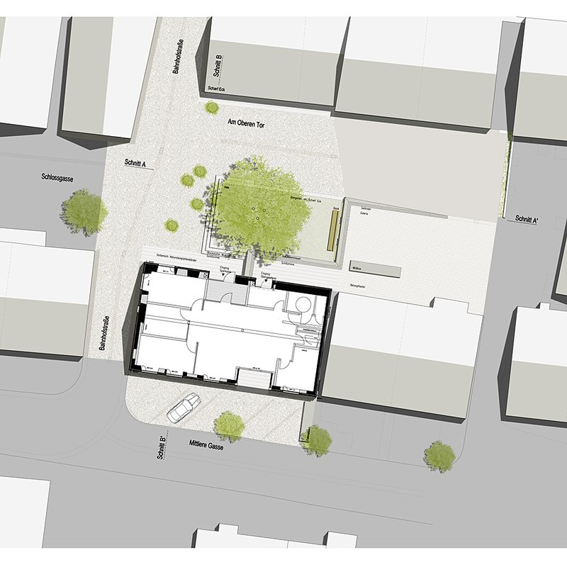 Durch den Rückbau von einem Gebäude entstand eine Freifläche innerhalb des dicht gespannten Gefüges im Kern der mittelalterlichen Altstadt.