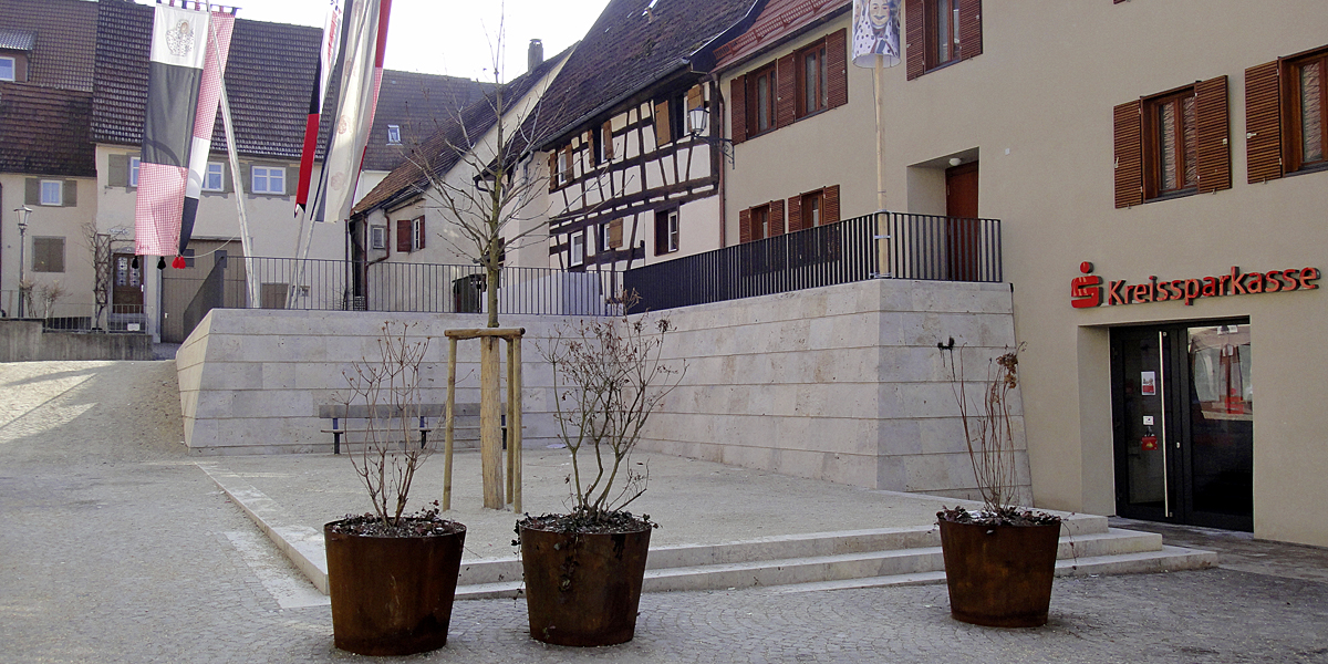 Platzgestaltung am Scharf Eck Winkel im historischen Ortskern