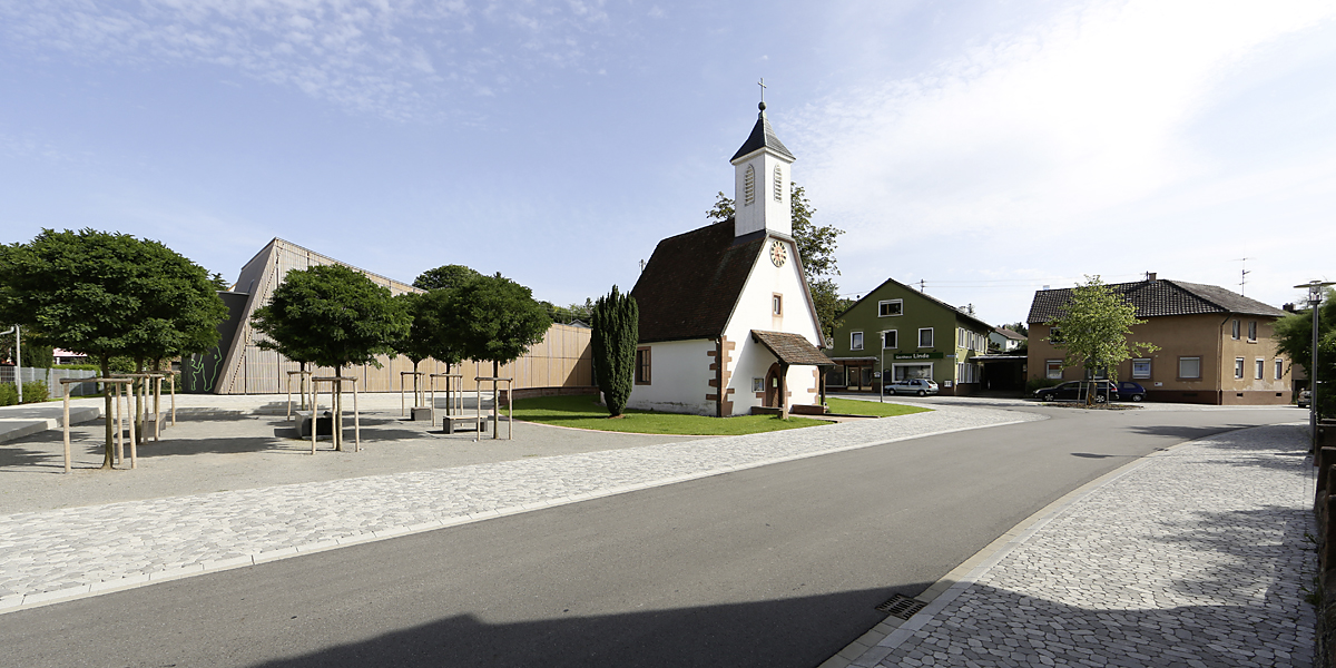 Mit dem Abriss zweier zentral gelegener Gebäude im Ortskern bot sich 2009 die Möglichkeit, sowohl baulich als auch funktional ein Zentrum für das Dorf auszubilden. Durch den Bau des Bürgerhauses und die Neugestaltung des vorgelagerten Platzes wurde die einmalige Chance der Neustrukturierung der Ortsmitte optimal genutzt.