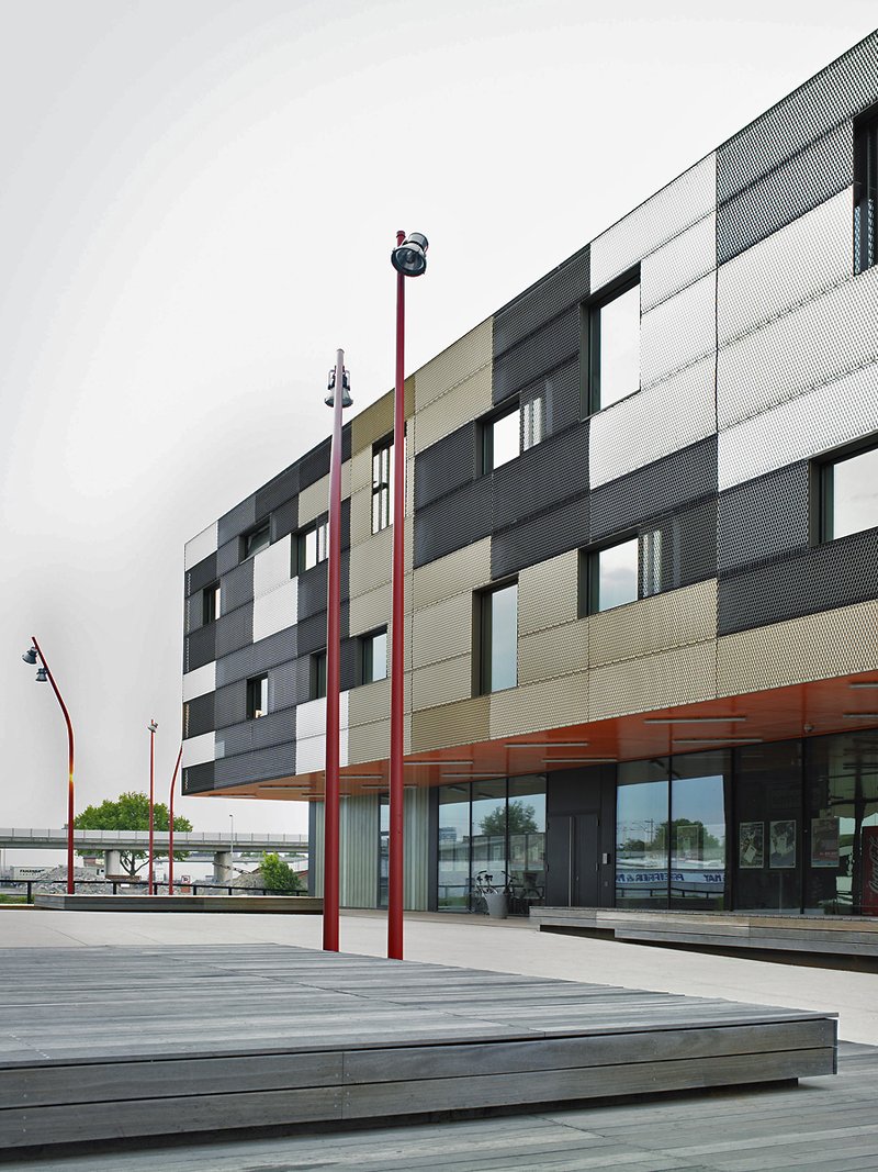 Die Popakademie ist Deutschlands erste und bislang einzige Musikhochschule mit Schwerpunkt Pop- und Rockmusik. Das mit Landes- und EU Mitteln geförderte Projekt ist ein wichtiger Stadtbaustein des Mannheimer Stadtentwicklungsgebietes Jungbusch und zugleich Initialzündung der neuen Uferpromenade entlang des Verbindungskanals, die erstmals einen direkten Zugang der Innenstadt zum Wasser ermöglichen wird. Das Gebäude reagiert in Typologie und Materialität auf das industriell geprägte Umfeld.
