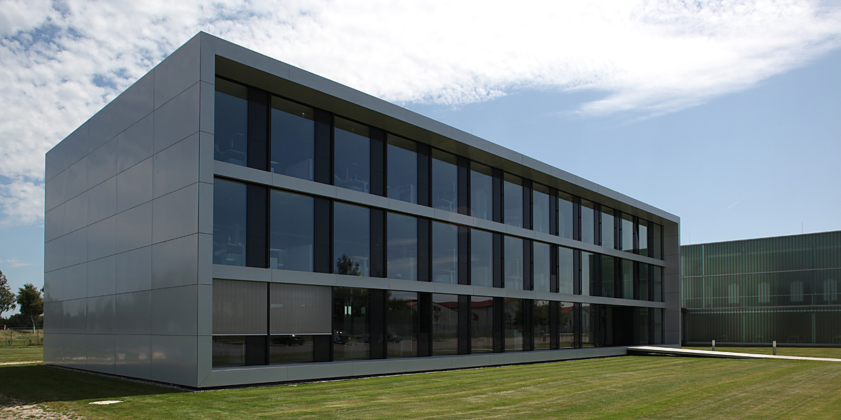 Im Verwaltungsgebäude sind für Heizung und Kühlung alle Decken bauteilaktiviert, über den außenliegenden Sonnenschutz aus Edelstahlprofilen ist die Verschattung auch bei hohen Windgeschwindigkeiten gewährleistet. Damit kann auf eine Klimaanlage verzichtet werden.