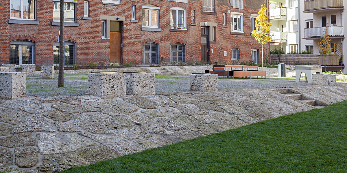 Auf städtischem Grund im Quartier Vogelsang-/Röte-/Seyffer-/Paulusstraße entstand nach Durchführung einer Machbarkeitsstudie gemeinsam mit den Anwohnern die Neugestaltung des Innenhofs, der von Bestandsgebäuden in typischer Gründerzeit-Atmosphäre mit überwiegend Klinkerfassaden eingerahmt ist.