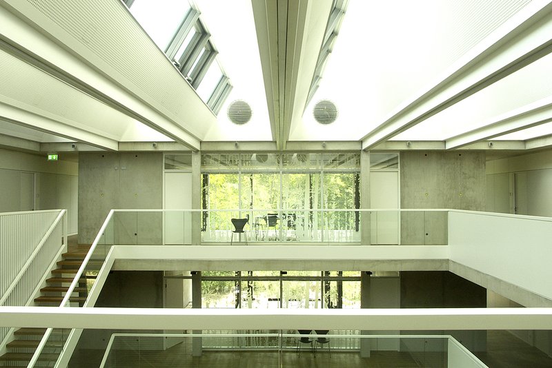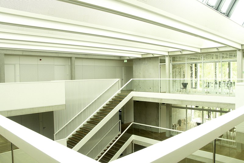 Die im vorhandenen Gebäude dominante diagonale Erschließung als räumliche Zäsur zwischen den beiden Flügeln wird von ihrer konträr dazu entwickelten alten Treppenanlage befreit, die sich etwas schwerfällig dagegen stellt, und durch eine einläufige Treppenanlage in eben dieser Hauptdiagonalen entwickelt.