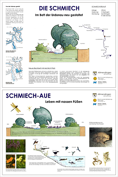 - Verfüllung des aufgelassenen Bachabschnittes (Verlust §24a - Biotop). Die Schmiech soll sich, abgegrenzt von den Flächen der örtlichen Landwirtschaft, ungestört entwickeln können und ökologische Funktionen im Gewässer- und Auebereich aktiviert werden (Leitbild "frei fließender Wiesenbach").