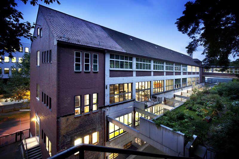 An einem städtebaulich und sozial stark vernachlässigten innerstädtischen Quartier wird ein eigentlich schon aufgegebenes Stück Stadtraum wieder besetzt. Haus und Gelände bieten genügend Freiräume, um das Modell der "kurzen Wege" - also gemeinschaftliches Leben und Arbeiten unter EINEM Dach - zu realisieren. Die gesamte Anlage eröffnet jetzt eine Vielzahl an Bewegungsräumen, innen und außen. Genau darin liegt die Qualität. Der behutsame Umbau der aufgegebenen Industrieruine stärkt den charakteristischen, kraftvollen Ausdruck der historischen Architektur als eigentliches Merkmal. Ein urbaner Baustein bleibt vor Ort erhalten.