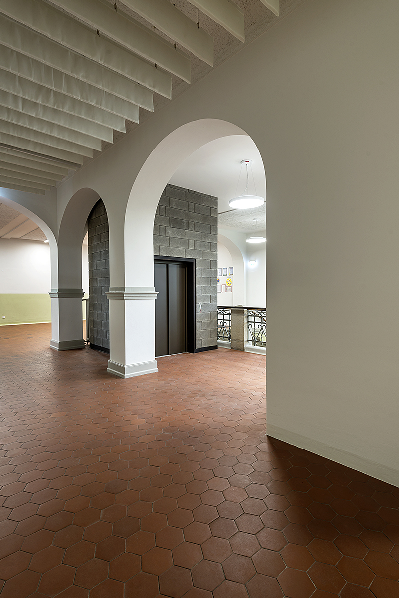 Die Haupteingangstreppe der Schule wurde seit ihrer Errichtung schätzungsweise 80 Millionen Mal begangen. Wir hoffen, dass zu dieser Zahl viele weitere freudvolle Begehungen hinzukommen und wir mit der Sanierung den Erbauern und zukünftigen Generationen von Nutzern gleichermaßen gerecht werden konnten.