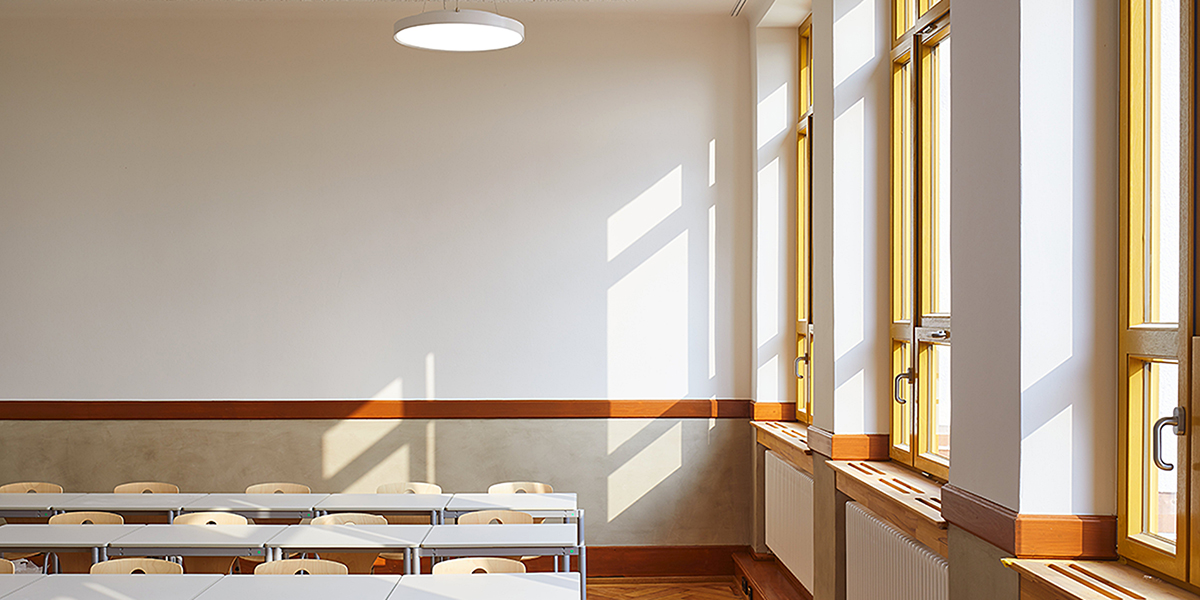 Voruntersuchungen an der Sieben-Keltern-Schule in Metzingen brachten etliche strukturelle Mängel an den Tag. Die Gesamtsanierung umfasste schließlich unter anderem die Beseitigung eines massiven Hausschwammbefalls, die Instandsetzung der bauzeitlichen Eisenbetondecken, die Fortschreibung des Brandschutzes und des Rettungswegekonzepts, die Entwicklung und Umsetzung eines Lüftungskonzepts, energetische Ertüchtigungen, die Optimierung kritischer Details, wie zum Beispiel der Dachentwässerung, den Ersatz der gesamten Haustechnik und anderes mehr. Dabei ging es immer darum, die Anforderungen der Nutzer und der Denkmalpflege in einem intensiven kommunikativen Prozess zu einvernehmlichen Lösungen zu führen.