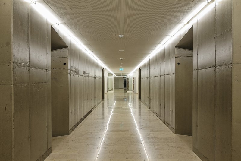 Die Passerelle speichert Wärme und gibt sie weiter an die Masse der Betonwände der Klassenräume. Im Sommer wird Frischluft über die Treppenhäuser im Norden angesaugt und im Süden über die RWA Anlage der Passerelle abgeführt, auch als aktive Nachtkühlung.
