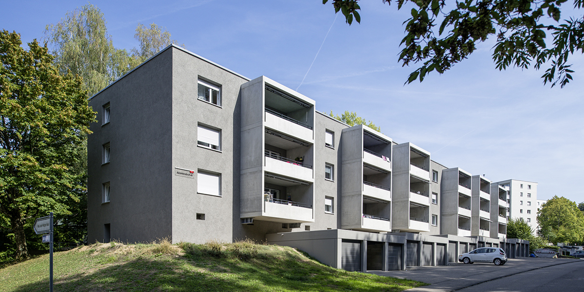 Die gut funktionierenden Grundrisse genügen auch heute noch den Anforderungen an einen vielfältigen Wohnungsmix, sodass ein Eingriff in die grundlegende Gebäudesubstanz ausbleiben konnte. Die notwendige Sanierung der Gebäudehülle hinsichtlich Wärmeschutz, komfortablen Außenbereichen in Form von geräumigen Balkonen und kommunikativen Eingangsbereichen konnten somit im bewohnten Zustand erfolgen. Die Wohnungen selbst werden bei einem anstehenden Mieterwechsel Zug um Zug saniert.