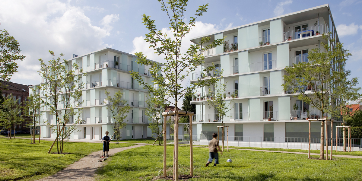 Baumschlager Eberle Lustenau GmbH, Lustenau (Wettbewerb/Entwurf) | GJL Architekten BDA, Karlsruhe (Ausführung Punkthäuser, Entwurf/Ausführung Doppelhäuser) | Prof. Günter Telian, Karlsruhe (städtebaulicher Entwurf nördliches Areal)