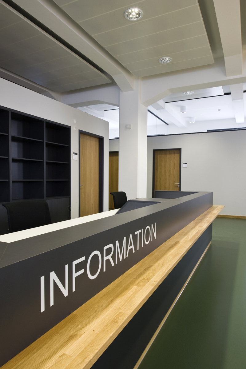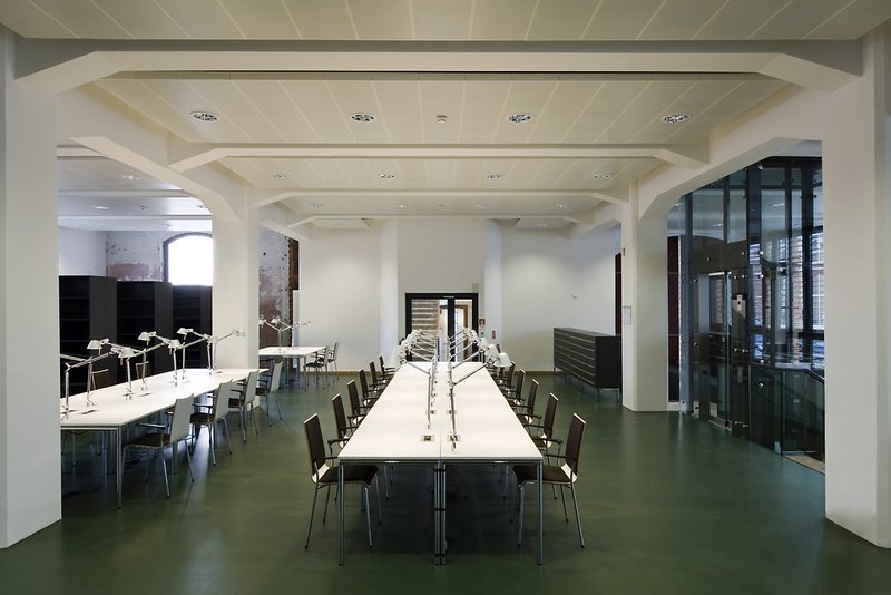 Die besondere Aufgabe: Umnutzung eines teilweise denkmalgeschützten Fabrikbaus von 1921 in ein modernes Archivgebäude. Dabei bestand die Herausforderung in der - trotz eines einheitlichen Erscheinungsbildes - sehr heterogenen Bausubstanz und unterschiedlichen Konstruktionsweise der verschiedenen Bauteile. Darüber hinaus gab es keinen Brandschutz, teilweise fehlte jede thermische Eignung. Vor dem Hintergrund langjähriger Erfahrung in Umnutzungsprojekten von mittelalterlichen Klosteranlagen über die Umnutzung einer Pfarrkirche bis zum Industriedenkmal war es agn auch hier wichtig, historische Spuren so authentisch wie möglich zu bewahren. Sowohl für denkmalgeschützte Elemente, als auch für jüngere, nicht unter Denkmalschutz stehende aber erhaltenswerte Bauteile galt es eine schlüssige bauliche und technische Gesamtlösung für das Ensemble zu finden. Beispiel: Die Ziegelfassaden bleiben dank innen liegender Dämmung sichtbar. Auch die Grundausprägung der Dächer und Fensteröffnungen zum gesamten Innenhof und auf der Giebelseite wurde erhalten, um die vorhandene kraftvolle und homogene Erscheinung der Gesamtanlage auch über den denkmalgeschützten Teil hinaus zu bewahren. Über das klimatisierte Archiv hinaus, wurden moderne Arbeitsplätze für Verwaltung und Werkstätten, ein öffentlicher Lesesaal mit angeschlossener Freihandbibliothek sowie diverse Gruppen und Medienräume eingerichtet.