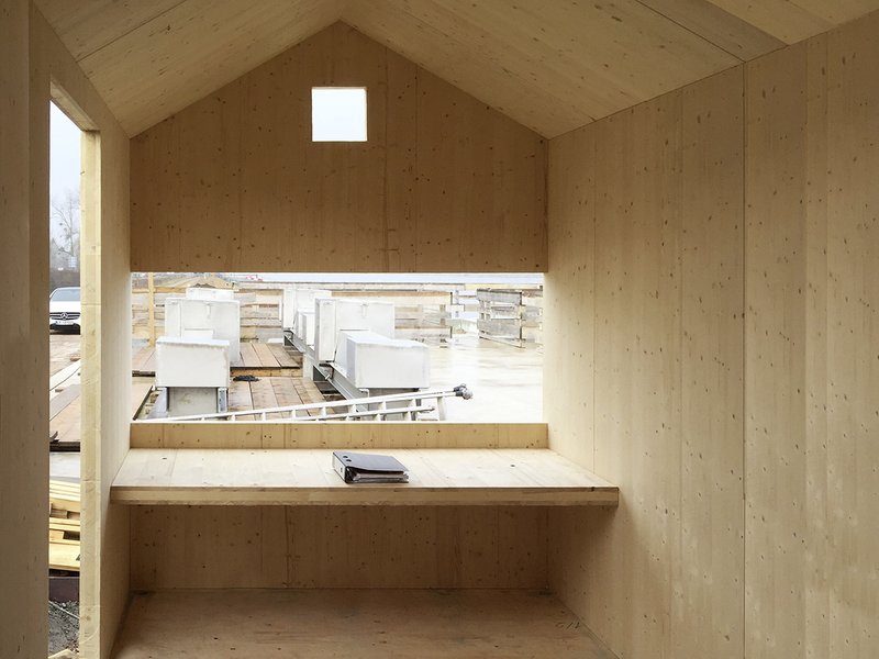 Mit der hinterlüfteten Cortenstahlfassade, der mit Holzfaserplatten gedämmten Unterkonstruktion und einer tragenden Konstruktion aus Brettsperrholztafeln trotzt der Steuerstand allen Witterungsbedingungen, erfüllt aber auch den sommerlichen Wärmeschutz und die Anforderungen der Wasser- und Schifffahrtsverwaltung hinsichtlich der Radarschatten. Der Holzbau steht auf einem außen gedämmten „Kriechkeller“ aus Stahlbeton, in den die Elektro-Steuerleitungen unterirdisch eingeführt werden. Auch der Arbeitstisch sowie der Boden des Steuerstands bestehen aus Brettsperrholzplatten. Die in die Brettsperrholzplatte eingepassten Doppelbodenplatten ermöglichen den Zugang zum Installationskeller zu Revisionszwecken.