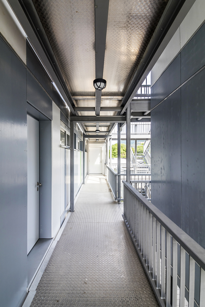 Aus Kostengründen wurde auf die im Planungszeitraum üblichen Metallcontaineranlagen verzichtet und dem Bauherrn stattdessen ein modulares Holzsystem vorgeschlagen, das die funktionalen und energetischen Bedingungen erfüllt, das flexibel und veränderbar eingesetzt werden kann und das vor allem im Planungszeitraum (Ende 2015) nicht teurer war, als die damals angebotenen, überteuerten Metallcontainersysteme.