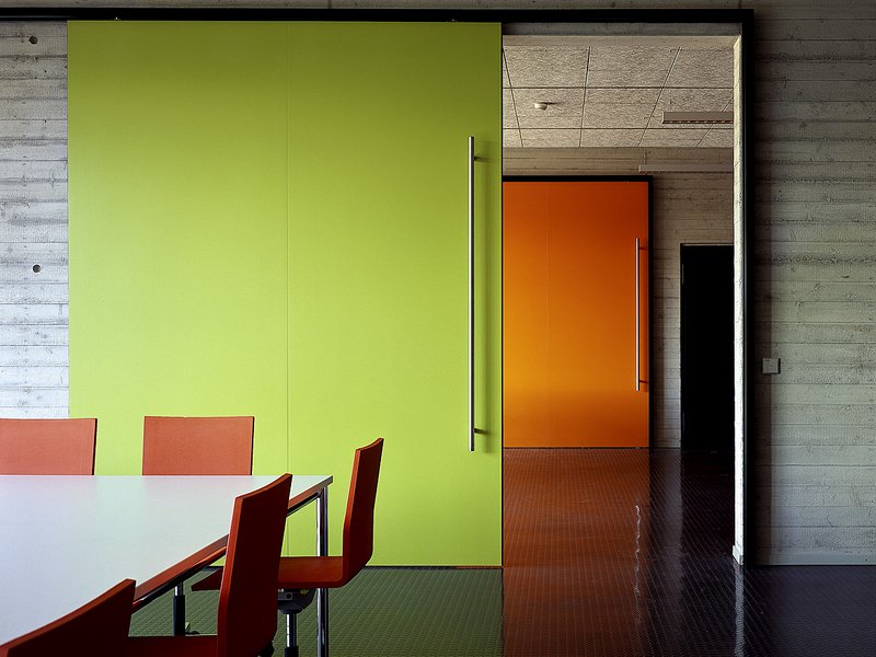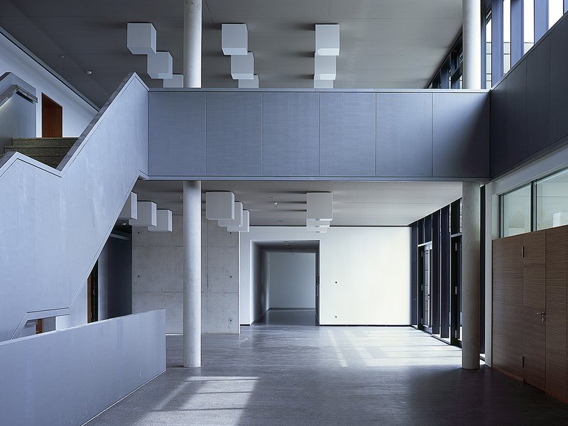 Die Volkshochschule als bedeutender öffentlicher Ort ist erkennbar als eigenständiges Gebäude mit wesentlichen Raumgruppen wie Empfang, Sekretariat und Veranstaltungsraum an einem angemessenen Platz im Erdgeschoss verankert. Sie ist als Fügung von Kuben entlang Fluren, Forum und Hallen gestaltet, vergleichbar mit Gebäuden entlang öffentlichen Wegen, Straßen und Plätzen. Dieses offene Raumkontinuum verbindet erlebbar die drei Ebenen der Schule mit dem zentralen Forum. Die eigenständigen Kuben werden durch gemeinsame Inhalte oder Raumgruppen definiert. Sie gliedern die Baumasse nach innen und außen, vermitteln zur anschließenden Wohnbebauung und ordnen die innere Struktur der Volkshochschule als Fortführung bekannter städtebaulicher Räume. Die Nahtstellen der Kuben zum Flur, zum Forum oder zur Halle werden durch ebenfalls bekannte Elemente wie Türen, Tore, „Schaufenster“ oder interne Passage definiert. Forum und Treffpunkt sind Orte der Begegnung. Der zentrale Bereich Allgemeinbildung bietet vielfältige Nutzungsvarianten als Bühne, Treffpunkt und Veranstaltungsraum. Er steht in offener Verbindung zum inneren Forum mit Cafeteria und Ausstellungsfläche und dem äußeren Dachgartenhof nach Süden. Dieser „Sinnesgarten“, als südliche Entsprechung zum erdgeschossigen Eingangsplatz öffnet den Blick aus dem zentralen Forum zur Stadtmitte Neckarsulms mit der prägnanten Stadtkirche.