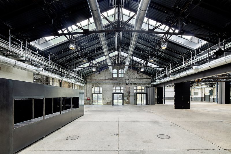 Im Inneren ist das Raumbild geprägt von Stahlstützen und rhythmisierenden Oberlichtern. Diese wurden nach historischem Vorbild rekonstruiert und tragen zugleich der neuen Nutzung Rechnung. Mit Hilfe von drei flexiblen Trennwänden lässt sich die Fläche des Kulturbetriebs in bis zu vier kleinere Räume aufteilen – die Hallen sind so für unterschiedlichste Veranstaltungsformen ausgelegt.