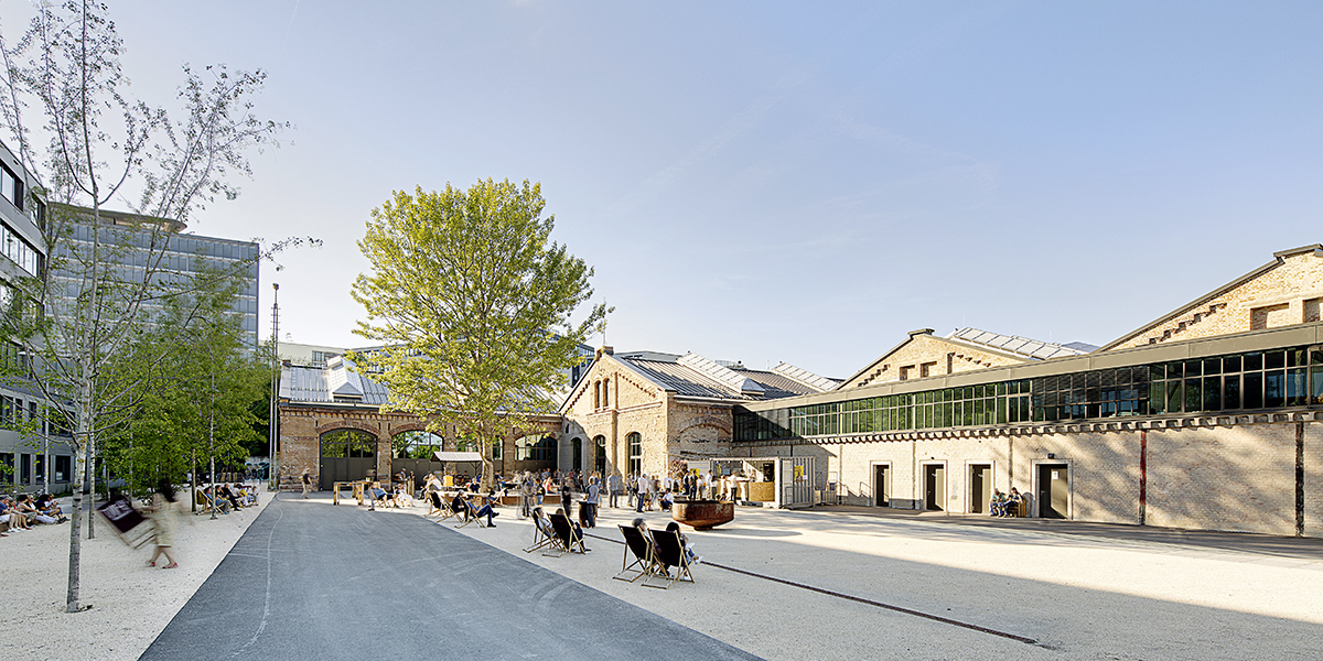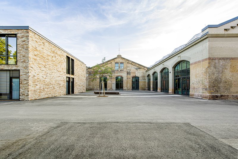 Mit der Ertüchtigung ist die Gebäudetypologie der Lokomotiv-Remise erneut ablesbar. Die Front mit ihren großen Toren liegt im Südosten. Auf den beiden gegenüberliegenden Stirnseiten sind zwei einladende, urbane Plätze entstanden. Auf der Ostseite wird der Platz umrahmt vom nördlichen Hallenflügel, der auf seine ursprüngliche Höhe aufgestockt wurde und von einem zweigeschossigen Neubau, der respektvoll vom historischen Bestand abrückt. Der gegenüberliegende Platz dient als Außenfläche für den Veranstaltungsbereich.