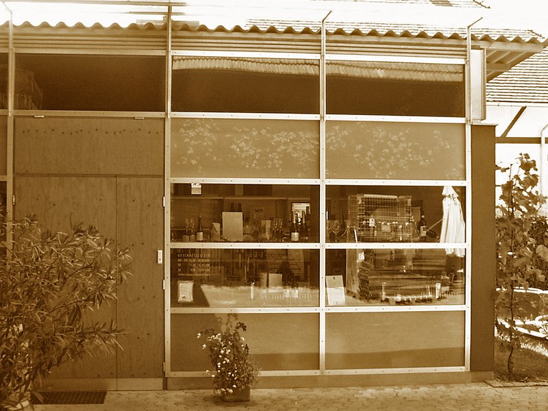 Gewünscht war ein kleiner, werbewirksamer Anbau, der dem qualitätvollen und modernen Gesamtauftritt des Weingutes entspricht, und den Wein in einer ansprechenden Athmosphäre ohne falsche Weinfassromantik präsentiert.